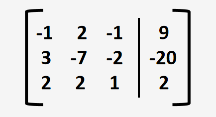 我们根据上面的方程组写一个增广矩阵,格式如下