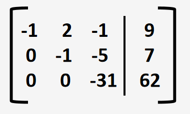 这样第三行就只剩z了,我们将两侧都除以-31就得到z的值
