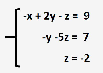 所以z的值就是-2。我们就可以通过第二行得到y的值,进而通过第一行得到x的值。