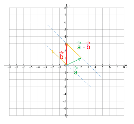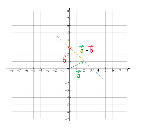 通过之前的知识,我们可以知道向量b减去向量a,等于如图所示的黄色的向量,类似于三角形的第三条边