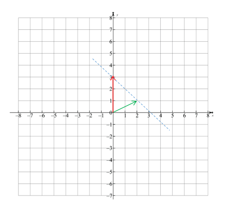 这样我们就能得到那条蓝色的虚线,即我们要求的经过向量a和向量b的直线。它的集合表达式如下
